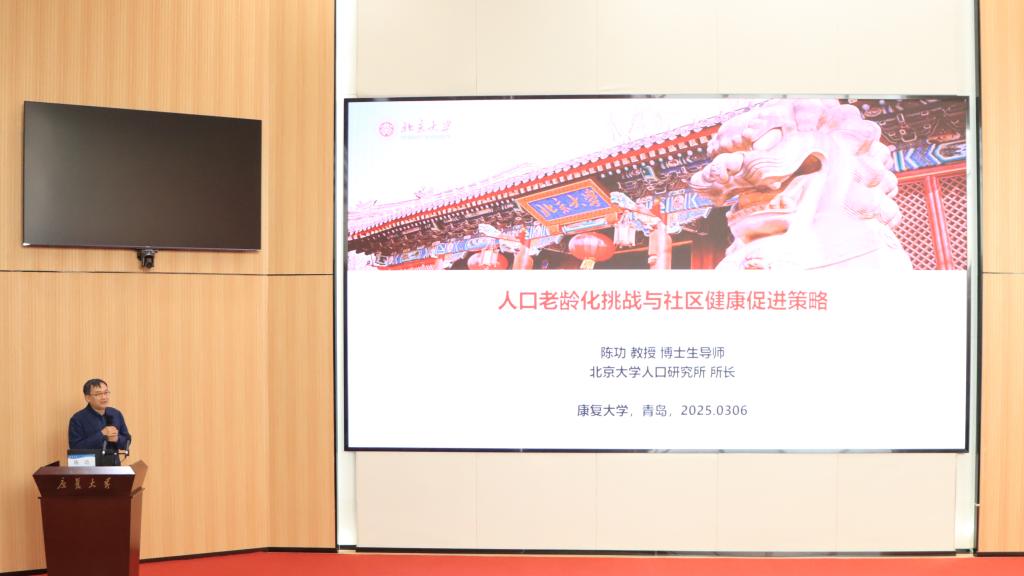 2025年3月6日,北京大学人口研究所所长、北京大学老年学研究所所长、中国老龄事业发展研究中心主任陈功教授来校交流访问,并做题为“人口老龄化挑战与社区健康促进策略”的学术报告。副校长刘奇迹教授主持报告。