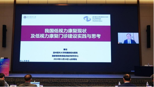 温州医科大学附属眼视光医院终身名誉院长瞿佳教授作了题为“我国低视力康复现状及低视力康复门诊建设实践与思考”的报告,介绍了我国防盲致盲工作及对低视力康复的调研情况,指出唤醒全社会的低视力康复意识迫在眉睫,强调区分低视力和盲的重要性,总结了低视力与视觉康复中心建设过程中的困境及解决方案。