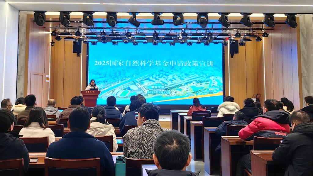 为进一步加强有组织科研,推进2025年度国家自然科学基金项目组织申报工作,充分宣讲自然科学基金委深化改革举措及2025年度申报政策变化和具体要求,按照学校2025年度国家自然科学基金项目申报工作总体部署及安排,1月17日科研与成果转化处对2025年国家自然科学基金项目申报政策进行宣讲并对基金申请假期工作进行安排。学校各单位近百名基金申请者参加会议。